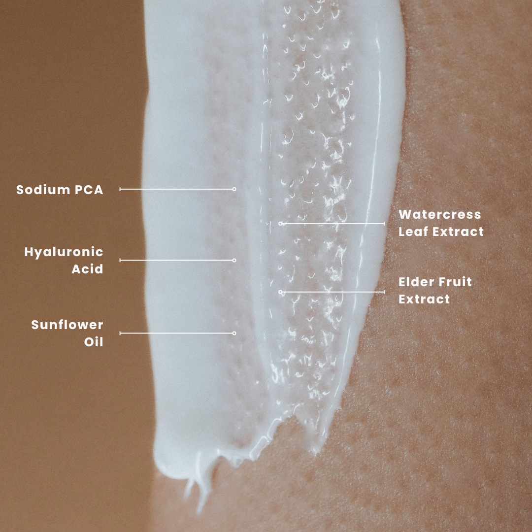 Instant Hydration: Hyaluronic Acid and Sodium PCA draw moisture deep into the skin, restoring softness and elasticity.